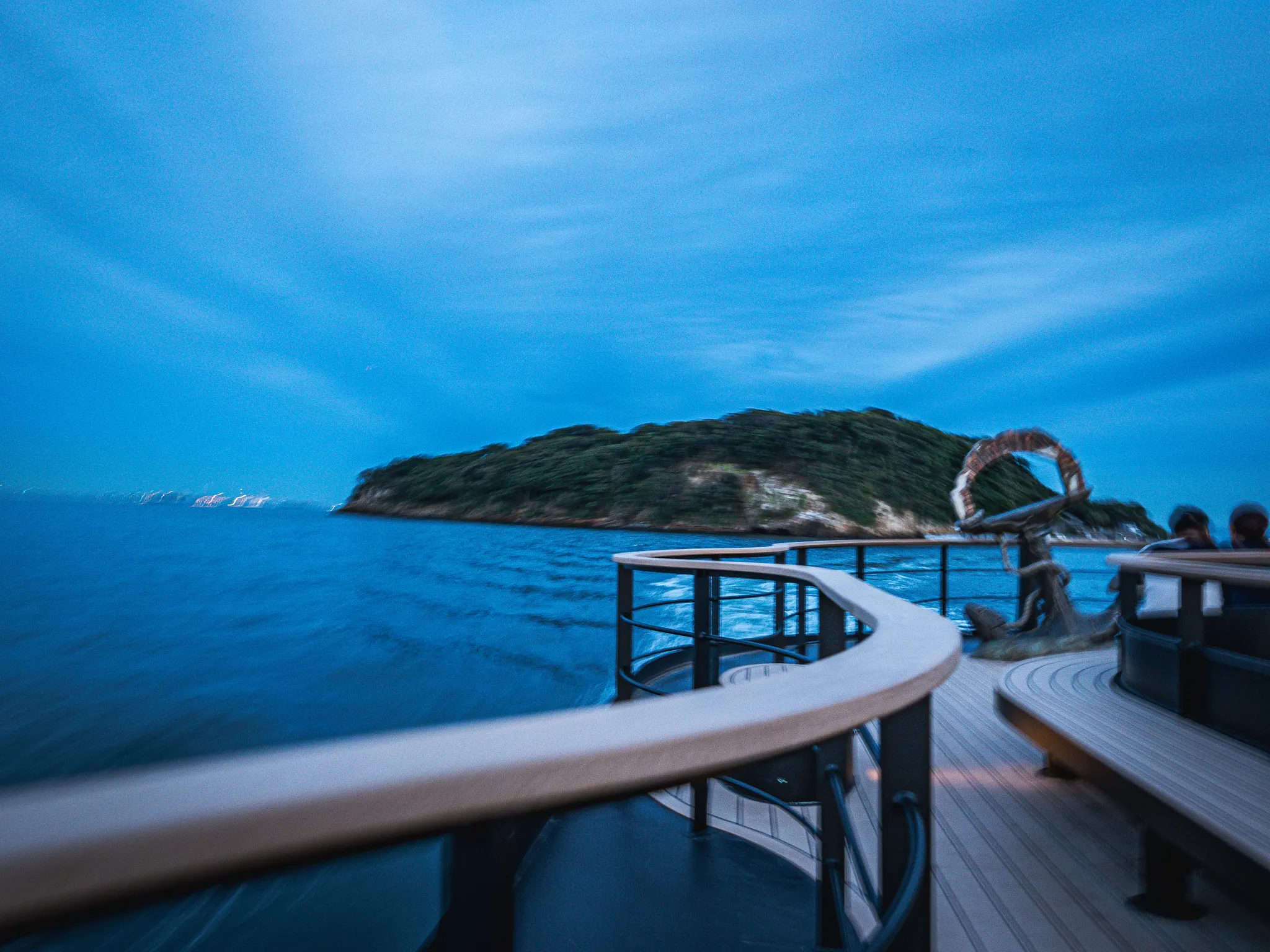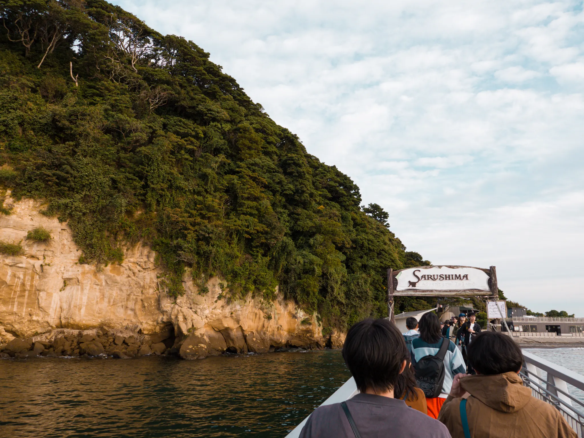 배를 타면 무인도 사루시마에 갈 수 있다.